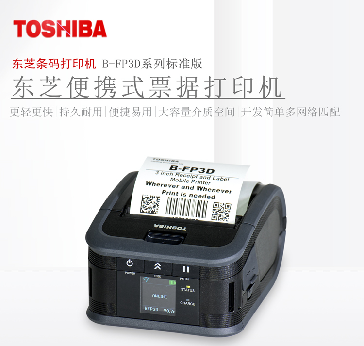 東芝將高性能移動(dòng)打印技術(shù)帶到你的手中,F(xiàn)P3D標(biāo)準(zhǔn)版3寸便攜式熱敏打印機(jī),擁有6IPS(152mm/s)高速打印、彩色中文液晶屏等技術(shù),蘊(yùn)含著東芝對(duì)于便攜性、可靠性和高性能的承諾,滿足各類便攜打印的應(yīng)用需求。