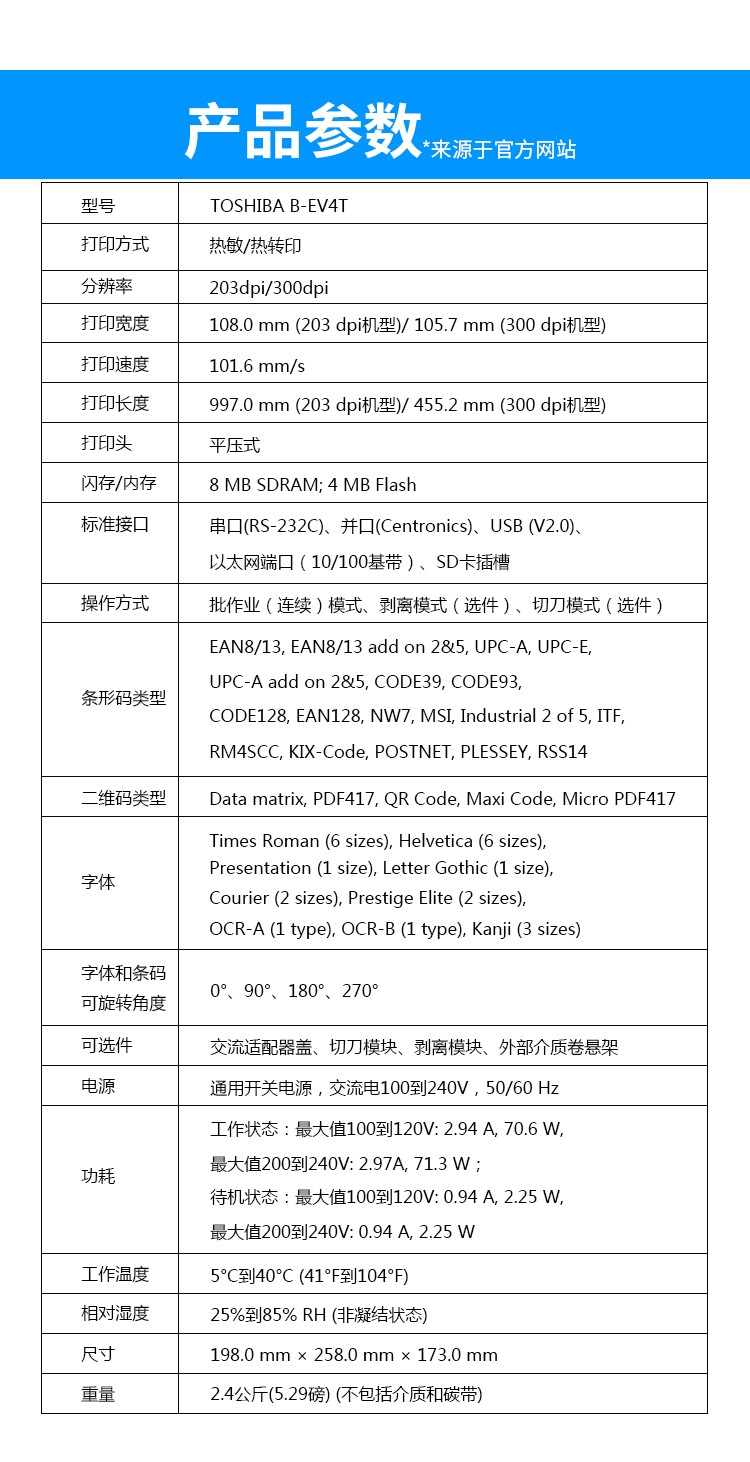 | 二維碼類型 | Data matrix, PDF417, QR Code, Maxi Code, Micro PDF417 |