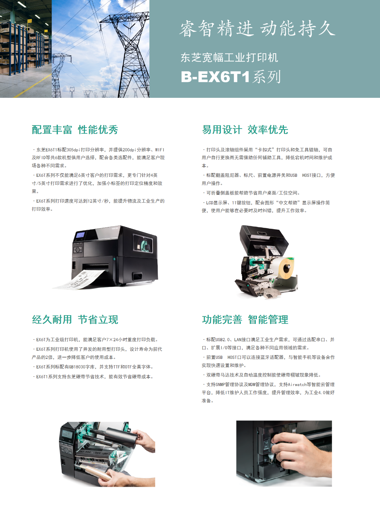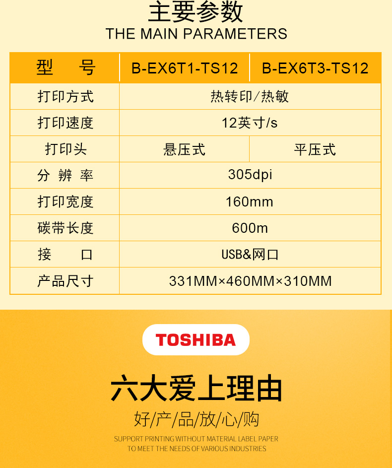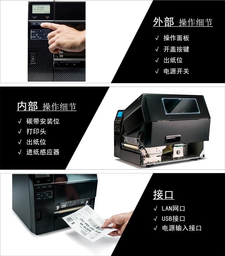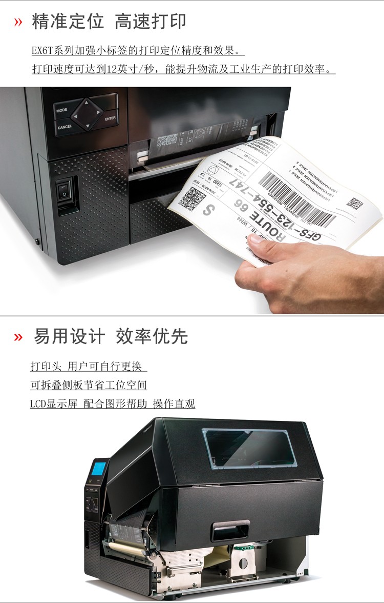 具有12IPS打印速度、結(jié)合先進(jìn)的打印溫度和步進(jìn)控制技術(shù),能滿足各類標(biāo)簽打印的需求,懸壓打印技術(shù)和碳帶節(jié)省功能,能極大地降低客戶使用成本,提升投資回報率。EX6T1堅固耐用,結(jié)合RFID及諸多人性化、智能化設(shè)計,提供寬幅工業(yè)標(biāo)簽打印應(yīng)用。