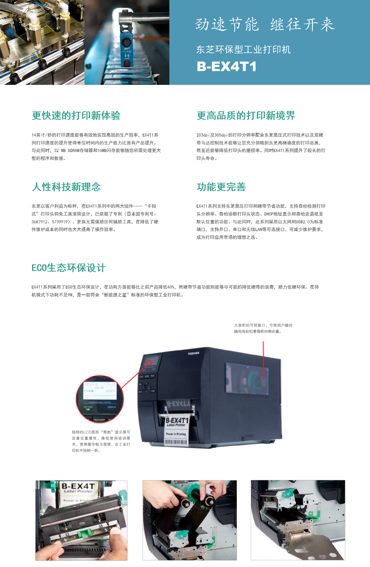 EX4T1系列能夠降低空閑狀態(tài)的功耗值,從而降低耗電量。雙碳帶馬達控制使碳帶無褶皺使更換碳帶之后也沒有褶皺現(xiàn)象發(fā)生,使介質(zhì)和碳帶的損耗程度有效降低。人性化設(shè)計不僅使打印頭及滾筒的更換無需依靠任何工具,并且還縮減了更換電源組件及主板的時間,使日常維護更簡易。