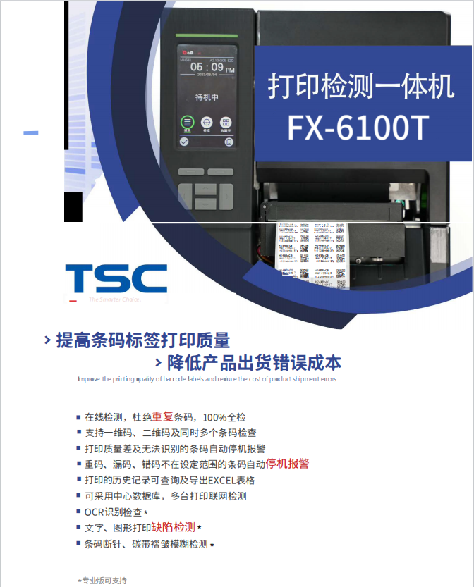 TSC FX-6100T UDI打印檢測一體機 提高條碼標(biāo)簽打印質(zhì)量 >降低產(chǎn)品出貨錯誤成本