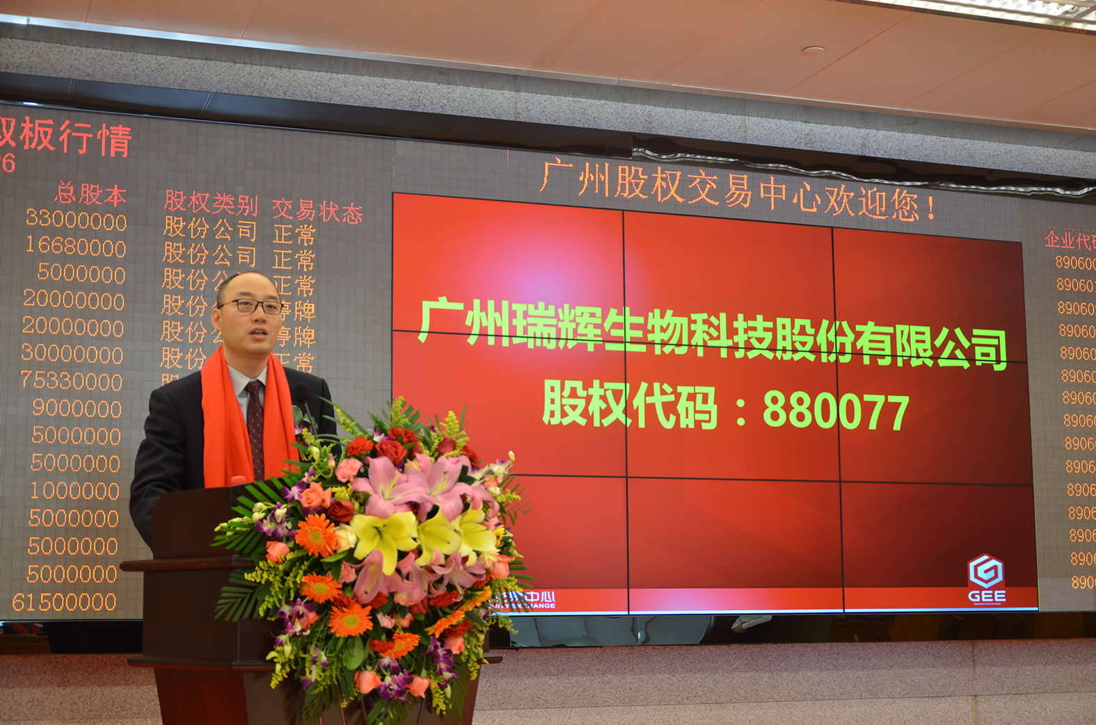 On December 30, 2016, Guangzhou Rhfay Biotechnology Co., Ltd. was successfully listed in Guangzhou equity trading center. There are four enterprises listed in Guangzhou stock exchange this time. Rhfay biotechnology is the first enterprise to make a speech and ring the bell.