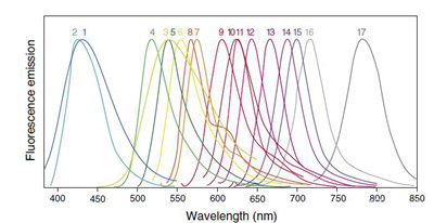 Fluorescein is a small molecular compound with molecular weight of hundreds to thousands. It is crosslinked with antibody (antigen) through active groups, and produces fluorescence effect in final use for quantification. There are many kinds of fluorescein, and the excitation range almost covers the ultraviolet to infrared region. However, the influence of stray light cannot be eliminated and the quantification is inaccurate. As shown below: