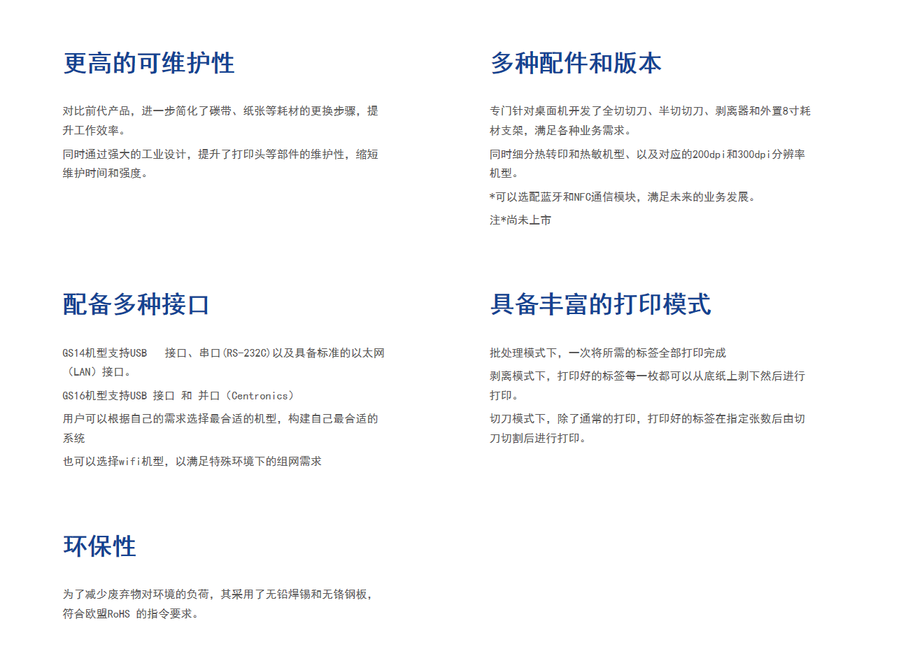 | 標準接口 | GS14及TS14機型(串口(RS-232C), LAN10/100 Base, USB2.0, USB Host) GS16及TS16機型(并口(Centronics), USB2.0, USB Host) |