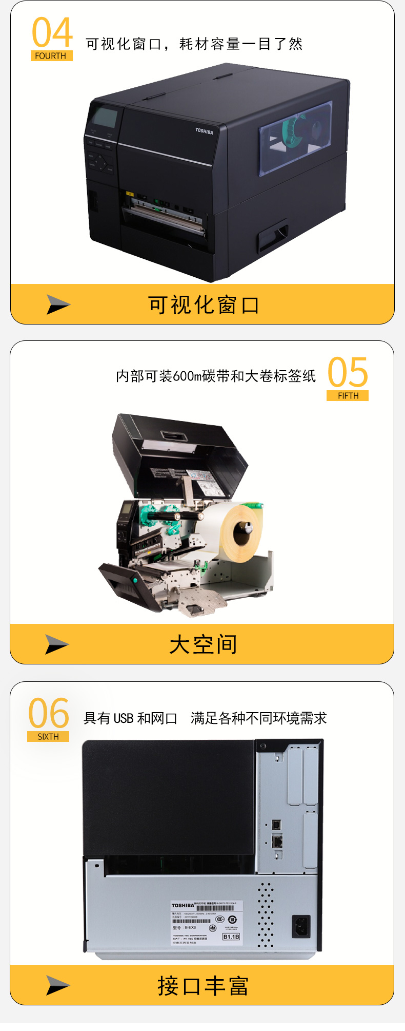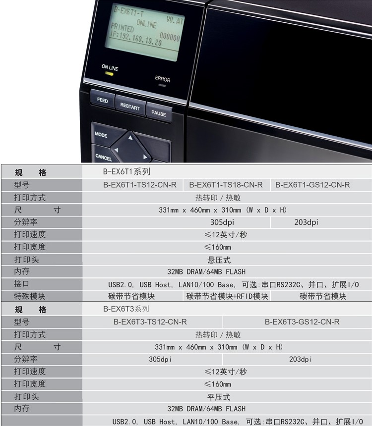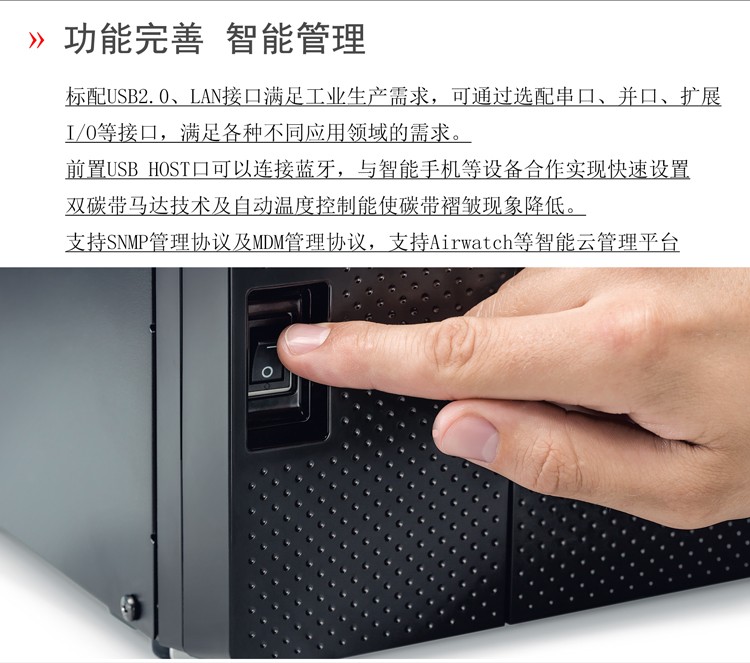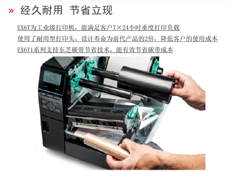 具有12IPS打印速度、結(jié)合先進(jìn)的打印溫度和步進(jìn)控制技術(shù),能滿足各類標(biāo)簽打印的需求,懸壓打印技術(shù)和碳帶節(jié)省功能,能極大地降低客戶使用成本,提升投資回報率。EX6T1堅固耐用,結(jié)合RFID及諸多人性化、智能化設(shè)計,提供寬幅工業(yè)標(biāo)簽打印應(yīng)用。